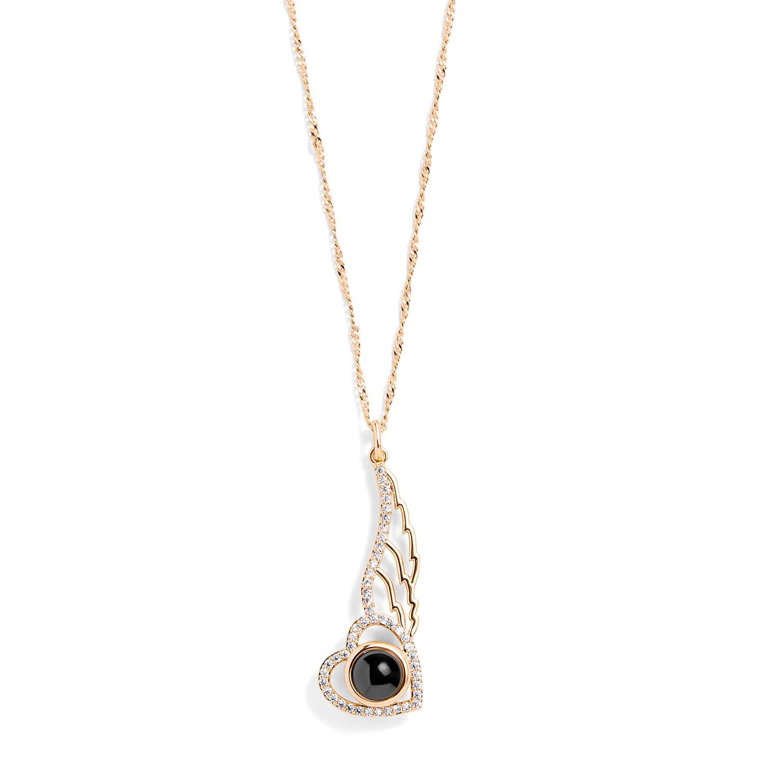 Personalized Pavé Angel Wing Photo Necklace