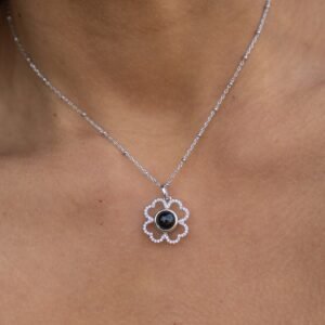 Personalized Pavé Clover Photo Necklace